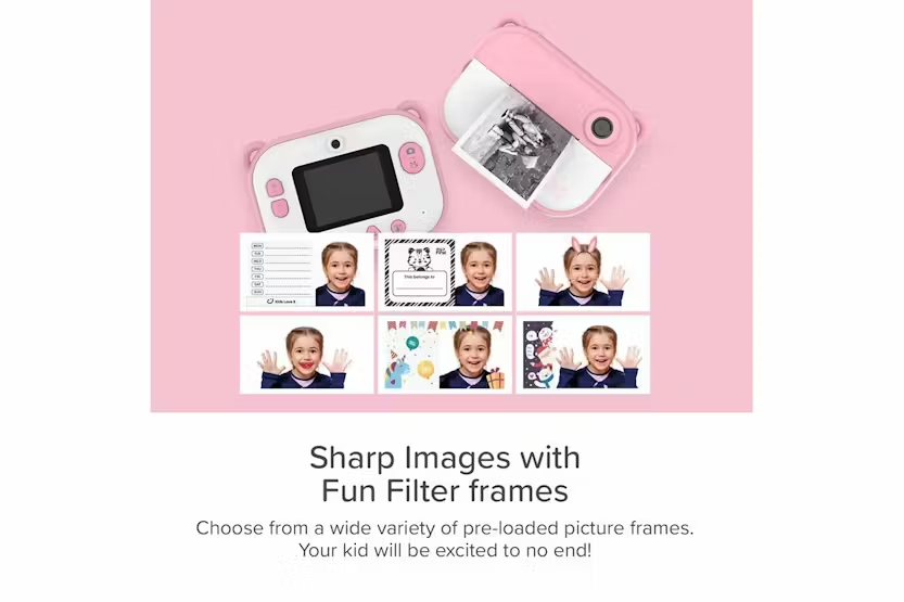 Capture and print memories instantly with the MyFirst Camera Insta 2 in Pink. This lightweight instant print camera for kids features a 12MP front and selfie lens, HD photo and video capabilities, and multiple frame templates for endless creativity. With refillable thermal paper and sticker options, your child can enjoy unlimited printing and stick their photos anywhere for added fun. Perfect for vacations, family activities, and arts and crafts projects, this camera is designed to bring joy and excitement to your child's learning process. The MyFirst Camera Insta 2 comes with 2 rolls of high-quality thermal paper, 1 roll of sticker thermal paper, a charging cable, and a neck lanyard. With a battery capacity of 1500mAh and quick 2.5-hour charging time, your child can capture moments from sun-up till sun-down. Whether they're creating photo albums, keeping notes, or simply having fun, this instant print camera is sure to be a hit with kids aged 4 to 13 years old.