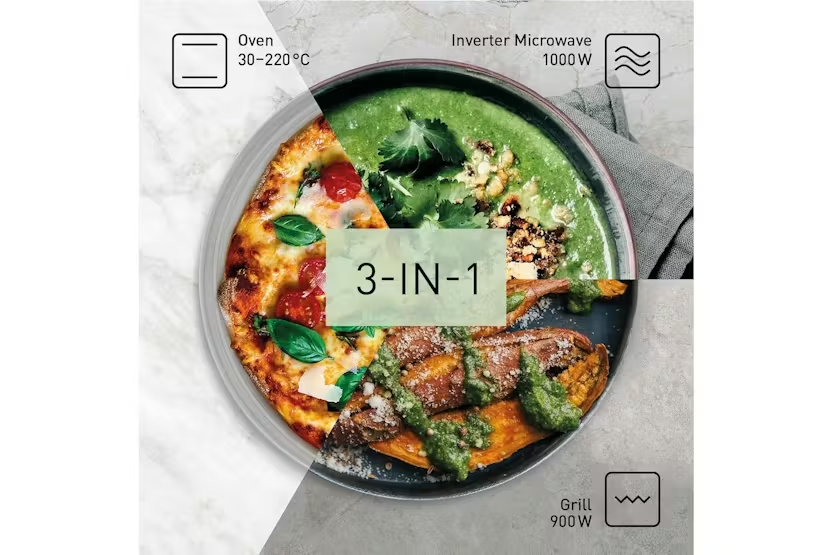 Enhance your cooking experience with the Panasonic MICR16B 3-in-1 Combination Microwave and Grill in sleek black. This innovative appliance offers a seamless fusion of microwave and grill power, promoting healthier and more efficient cooking with features like Eco Combi mode and low-fat cooking capabilities. With a large 23L capacity and automatic cavity cleaning function, this Panasonic Microwave is designed to elevate your kitchen experience with convenience and style. Upgrade to the MICR16B for quick, healthy, and delightful meals while saving energy and time in the process.