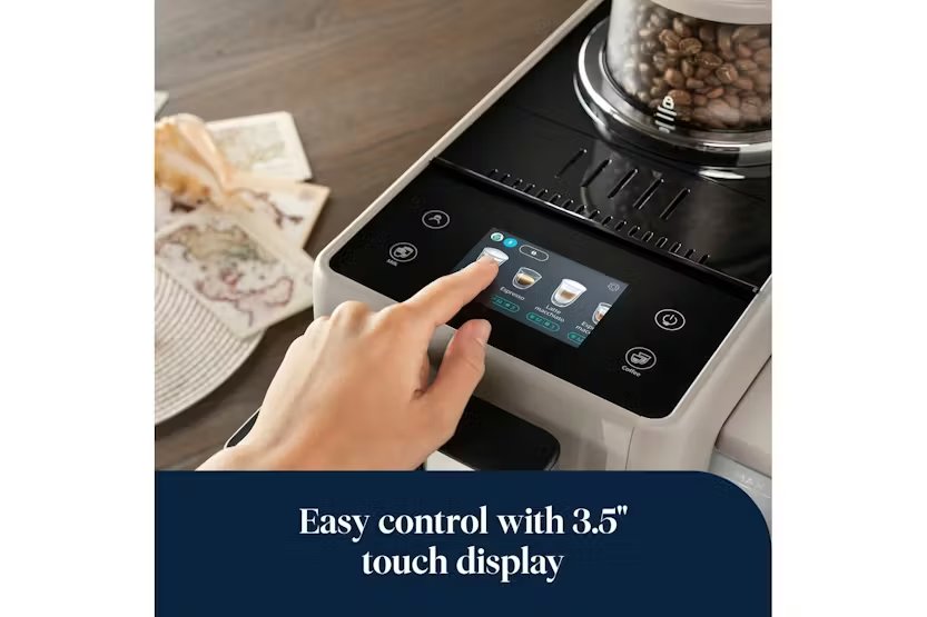 Immerse yourself in the world of coffee with the De'Longhi Rivelia Fully Automatic Bean-to-Cup Coffee Machine. With the Bean Switch System, explore infinite bean varieties and enjoy a personalized coffee experience tailored to you with the 3.5" full-touch colour display. The Lattecrema Hot Technology ensures fine rich milk foam for your milk-based drinks, all in a compact and stylish sand beige design. With one-touch drinks and the ability to customize length and user profiles, this machine offers convenience and quality in every cup. Elevate your coffee routine with the EXAM440.55.BG Rivelia Coffee Machine. The De'Longhi Rivelia EXAM440.55.BG in sand beige offers a seamless coffee experience with features like the Bean Adapt Technology and 16 one-touch drinks. Enjoy freshly ground coffee, automatic milk foam, and the ability to switch between different bean varieties effortlessly. The intuitive display and compact design make this machine a perfect addition to any coffee lover's kitchen. Elevate your coffee experience with the De'Longhi Rivelia Fully Automatic Bean-to-Cup Coffee Machine.