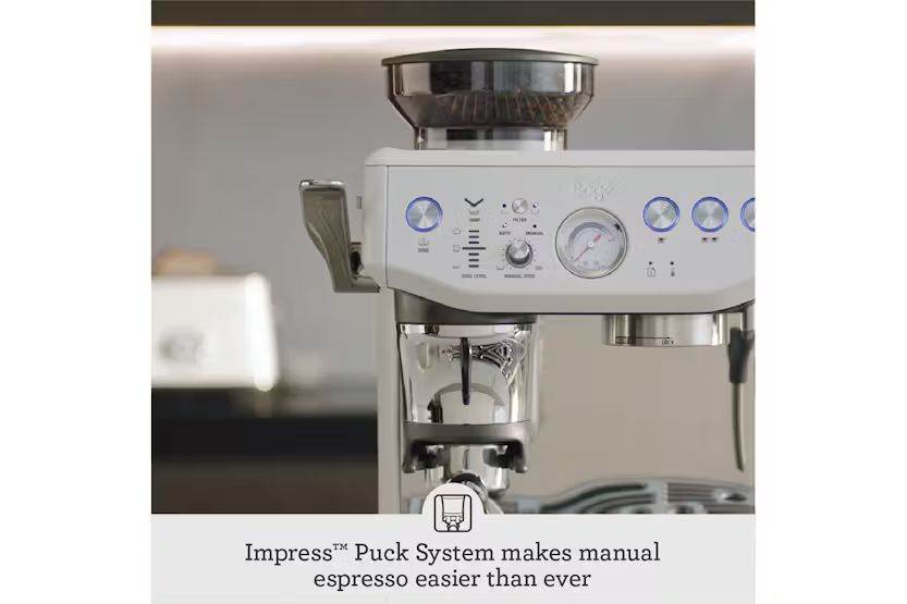 Experience the convenience of creating third wave specialty coffee at home with the Sage The Barista Express Impress Espresso Coffee Machine. This innovative machine features the Impress Puck System for precise dosing and tamping, along with intelligent dosing and assisted tamping for consistent and professional-quality results. With features like low pressure pre-infusion, 9 bar extraction, and manual milk texturing, you can enjoy delicious espresso and creamy micro-foam milk for latte art right in your kitchen. Elevate your coffee experience with this all-in-one espresso machine. Included in the box are essential accessories like a stainless steel portafilter, milk jug, filter baskets, and cleaning tools, making it easy to maintain and enjoy your espresso machine. With a 15 bar Italian pump, Thermocoil system, PID temperature control, and 1600W Thermocoil-integrated stainless steel construction, this machine offers the perfect balance of convenience and quality for coffee enthusiasts. Upgrade your home coffee setup with the Sage The Barista Express Impress Espresso Coffee Machine.