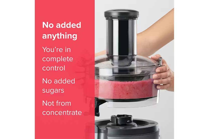 The Nutribullet 800W Juicer is a compact and efficient juicer designed for everyday use. With a wide 3” feed chute that eliminates the need for prep work, two speeds for precise juicing control, and a sealing juice pitcher for easy storage, this juicer makes it simple to enjoy fresh, homemade juice with minimal effort. Cleanup is a breeze with dishwasher-safe parts, making this juicer a convenient addition to any kitchen. Say goodbye to complicated juicing and hello to quick, delicious results with the Nutribullet 800W Juicer.