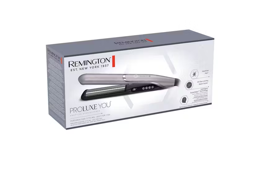 The Remington Proluxe You Adaptive Hair Straightener | S9880 is designed with Intelligent StyleAdapt Technology that personalizes the heat for your unique hair needs, ensuring salon-quality results that last all day. With two StyleAdapt user profiles and an advanced diamond ceramic coating, this straightener offers superior heat distribution and a smooth glide for sleek, professional styles. Featuring a digital temperature control, ultra-fast heat up, and safety shut off, this straightener is a must-have for personalized, healthier styling.
