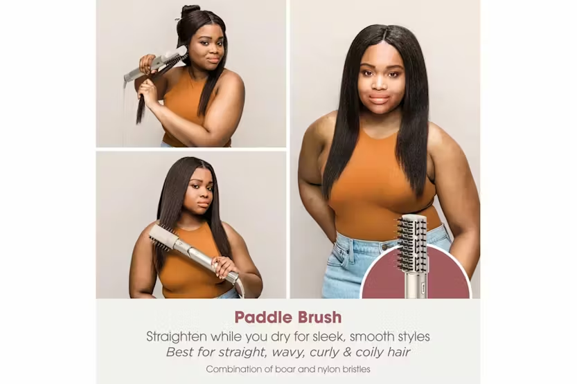The Shark FlexStyle 5-in-1 Air Styler & Hair Dryer Set is a powerful and versatile styling tool that combines a hair dryer with a 5-in-1 styling wand, allowing you to effortlessly transform your hair routine. With features like auto-wrap curlers, paddle and oval brushes, a styling concentrator, and a curl-defining diffuser, this set is perfect for all hair types and skill levels. Say goodbye to heat damage with consistent air temperatures and enjoy fast drying power for salon-quality results at home. Lightweight and compact, this set is your go-to solution for styling on the go. Elevate your hair styling game with the Shark FlexStyle 5-in-1 Air Styler & Hair Dryer Set. With 5 ways to style, including curling, straightening, volumizing, smoothing, and defining, this set offers endless possibilities for creating the perfect look. The innovative coanda technology wraps and curls hair automatically, while the included brushes and attachments help you achieve sleek blowouts, bouncy curls, and more. Enjoy fast drying power without compromising on performance, and keep your stylers organized with the convenient storage case. Say hello to effortless styling and goodbye to heat damage with this versatile and lightweight styling set.