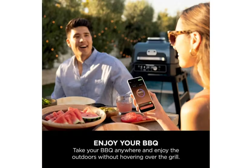 The Ninja Woodfire Pro Connect XL Electric BBQ Grill & Smoker in Blue/Black allows you to control your BBQ from your phone with the Pro Connect app, giving you the freedom to relax and enjoy time with loved ones. With built-in probe and 7 functions including BBQ grill, smoker, air fry, bake, roast, dehydrate, and reheat, this grill offers authentic smoky flavors with natural wood pellets, all powered by electricity for easy and safe outdoor use. Plus, with a large grill capacity fitting up to 10 burgers or 2 whole chickens, you can host big BBQ gatherings with ease. Experience the convenience and versatility of the Ninja Woodfire Pro Connect XL Electric BBQ Grill & Smoker. Control your cooking progress from your phone with the Pro Connect app, while enjoying the authentic smoky flavors of woodfire technology. With a large grill capacity and 7 cooking functions, this electric BBQ grill is perfect for hosting gatherings and creating delicious meals outdoors. Built with premium materials for year-round outdoor use, this BBQ grill offers a hassle-free and safe alternative to traditional charcoal and gas grills.