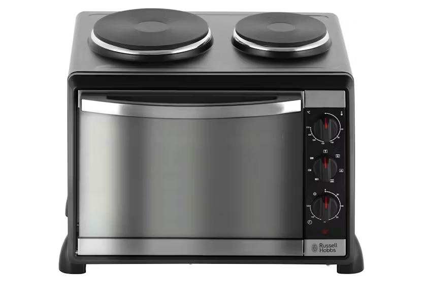 The Russell Hobbs Mini Kitchen Multi-Cooker with Hotplates | 22780 is the ultimate space-saving appliance for your kitchen. With a fan-assisted oven, adjustable thermostat control, and double hotplates, this compact cooker allows you to roast, bake, grill, fry, and boil with ease. The additional baking tray and grilling rack make cooking multiple items at once a breeze, while the easy-to-clean design saves you time on chores and lets you focus on enjoying your culinary creations. Experience the convenience and versatility of the Russell Hobbs Mini Kitchen Multi-Cooker with Hotplates | 22780. With its compact size, powerful oven, and double hotplates, this appliance is perfect for all your cooking needs. Say goodbye to calling in an electrician - simply plug in and start cooking. Plus, the included baking tray and grilling rack make meal preparation a breeze. Save time on cleaning and enjoy more time tasting your delicious dishes with this all-in-one kitchen essential.