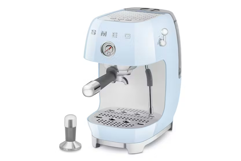 Description Smeg ECF03 Espresso Machine – Hot & Cold Brew Versatility Bring café-quality coffee into your kitchen with the Smeg ECF03 Espresso Machine, now featuring cold brew functionality. Whether you're craving a classic hot espresso or a silky double cold brew, this stylish machine delivers in just 4 minutes. Transform Your Daily Routine into a Barista Ritual With the ECF03 manual espresso machine, you can enjoy a rich and authentic espresso, a creamy milk-based drink, or be surprised by the refreshing taste of cold brew—ready in just a few minutes. Professional-grade accessories and premium materials complete the experience of a true connoisseur, all from the comfort of your home. Power of Choice Brew hot or cold at the touch of a button. Enjoy rich espresso to kickstart your mornings or chilled coffee for effortless iced favorites. More Than Espresso From smooth cold brews to your go-to hot drinks, the ECF03 offers full coffee versatility with intuitive controls and Smeg’s signature 50s retro design. Key Features Filter Holder: Includes a stainless steel filter holder with three filters (single, double, and paper pods). Cup Storage: A passive cup warmer on top of the machine keeps your espresso cups ready to use. At-Home Barista Experience: Dial in your perfect flavor and pour with confidence—whether it’s a bold, piping-hot shot or a clean, cool brew served over ice. Performance Highlights 15-Bar Pump: Ensures consistently perfect espresso extraction for a superior coffee experience. Thermoblock Heating System: Enables faster machine preparation and precise water temperature control for optimal coffee extraction. Precision Pressure Monitoring: An integrated pressure gauge allows easy monitoring of extraction pressure, ensuring each shot is brewed to perfection. Cold Brew in Under 5 Minutes: Prepare a perfect espresso—single or double—or enjoy a refreshing cold brew in less than five minutes. Professional Steam Wand: Professional Steam Wand: Made of stainless steel, ideal for creating smooth and creamy foam for cappuccinos and other milk-based beverages. Included Accessories Complete your barista setup with: Single and double coffee filters (pressurized and non-pressurized) Stainless steel tamper Water hardness test strip Cleaning disc Brush and cleaning needle