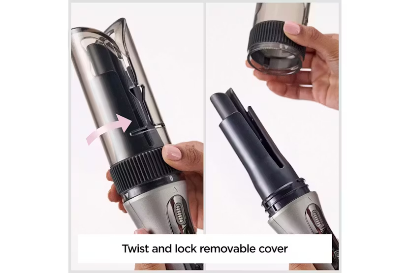 Description Effortlessly create defined curls, soft beach waves, or a soft blow-dry look with this automatic curler and waver. Enjoy safe, easy styling with long-lasting results and a high-shine finish. Advanced Auto-Curl Technology Automatically wraps and styles hair around the barrel for fast, tangle-free results. Perfect for achieving salon-quality curls with minimal effort. Combined Heat & Airflow Gentle heat and airflow work together to style hair from all sides, helping curls and waves last longer while protecting hair from excessive heat. Custom Styling Options Choose from 4 heat/airflow settings, 4 timer settings, and 3 rotation directions to create a variety of looks — from soft waves to defined curls. Heat Control Ideal for everything from effortless blow-dry looks to beachy waves and glam curls. The ceramic barrel and airflow system offer four styling modes: - Airflow only - 170°C - 185°C - 200°C Curl Direction Control Three rotation settings let you customise your curl direction for beachy, natural, or polished looks. Curl Selection Timer Four timer settings help you create different curl formations, giving you control over the tightness and definition of each curl. Product Features: Ultra-fast heat up 25mm ceramic coated barrel Ultra-fast heat up 3 Rotation settings Advert Style secret air Remove and replace air Turn on. Set time, heat, curl direction