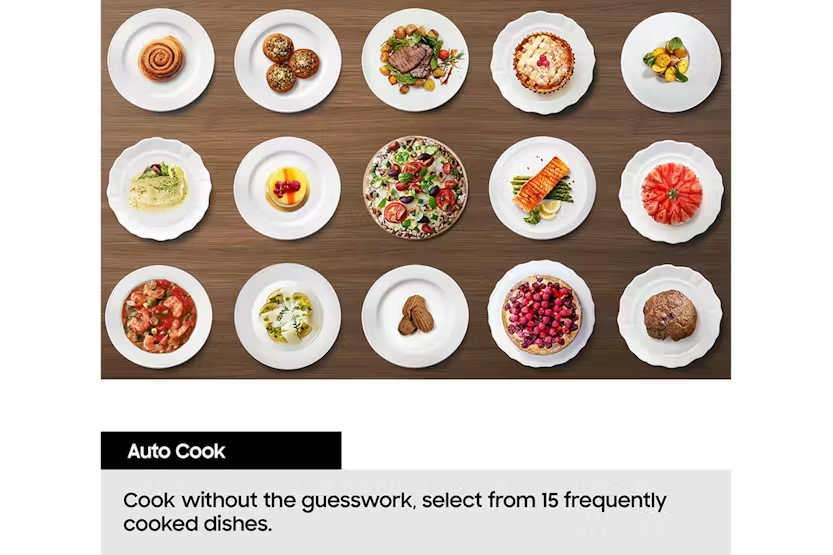 Description Auto Cook Cook tasty meals without guesswork, Auto cook offers options for 15 dishes, each pre-programmed with the right mode, time & temperature, Just select the food type & weight. ECO Mode Home appliances that stay powered on every day waste energy without you noticing, The Standby Mode turns off the microwave oven’s display and uses the minimum power to keep it ready to use. Ceramic Interior Clean up easily after cooking. The smooth surface of the durable CERAMIC INSIDE finish on the microwave oven’s interior can be cleaned without scrubbing and has an antibacterial activity of 99.9%¹ Quick Defrost Choose from 5 food types, Simply enter the type & weight of the food and the microwave calculates the defrosting time for quick ingredient preparation. Product Features Installation type: Countertop Special features: Auto cook,Ceramic enamel interior Heating method: Electric