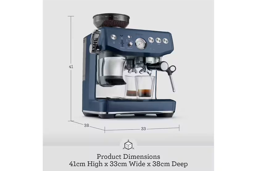 Description Check out the video: Check out the video: Create third wave speciality coffee at home from bean to espresso in less than a minute. The best of the Barista Express with the Impress Puck System. Helping you to achieve the perfect dose and a precise tamp while reducing the grinds on the machine and bench top. Experience Third Wave Speciality Coffee at Home, Made Possible by the 4 Keys Formula Sage espresso machines incorporate the 4 keys formula used by professional cafe machines. Designed to use the right dose of freshly ground beans, ensure precise temperature control, optimal water pressure and create true micro-foam milk essential for latte art. You're only a touch away. Intelligent Dosing with an Integrated Conical Burr Grinder with 25 Grind Settings The dose is automatically calculated based on the last grind, ensuring it's ready for the next use. Assisted Tamping Delivers a constant 10kg impression to your dose, finishing it with a 7º barista twist for a more polished puck. Precision Measurement If your dose required a bit more or a bit less, the intelligent dose system auto corrects, remembering the last dose and tamp outcome and adjusting it to ensure you achieve the perfect dose this time. Low Pressure Pre-Infusion Followed by 9 Bar Extraction An opulent, creamy and caramel coloured espresso starts with low pressure pre-infusions, followed by a high pressure (9 bar) extraction process delivered via our 15 bar Italian pump. Thermocoil Heating System Delivers 93°C with PID Temperature Control The Thermocoil heating system with PID temperature control delivers water at exactly 93°C for perfectly balanced flavours. Manual Hand-crafted Micro-foam Sage powerful steam wands are designed to quickly turn milk into smooth micro-foam with a delicious silky texture, ready for pouring latte art. 54 mm Stainless Steel Portafilter Delivers Full Flavour with Dual and Single Wall Filters Full bodied coffee with rich and complex flavours is created using the ideal dose of 18g of freshly ground beans delivered by a professional style 54mm stainless steel portafilter. What's in the Box: 54mm Stainless steel portafilter 480ml Stainless steel milk jug 1 & 2 Cup single and dual wall filter baskets Water filter holder with filter The razor precision trimming tool Cleaning tablets Allen key Steam wand cleaning tool Cleaning disc Cleaning brush Descale powder Product Features: Manual Milk Texturing 15 bar Italian pump Thermocoil system PID temperature control 1600W Thermocoil-integrated stainless steel Simple button control