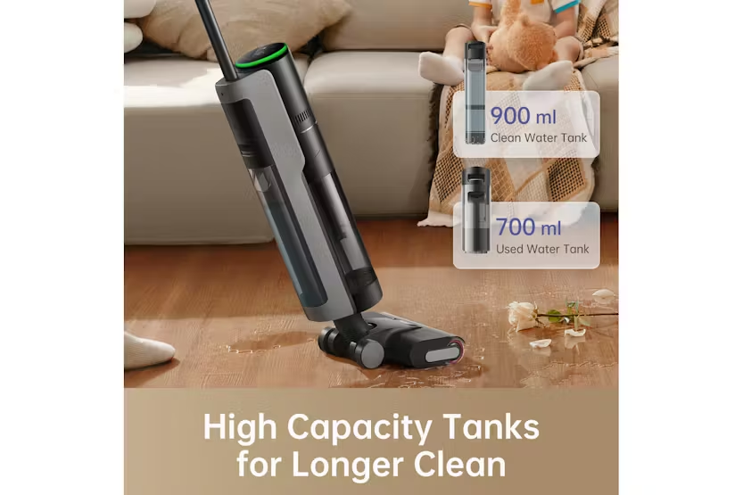Description Check out the video: Automatically Dries While Charging The brush is thoroughly dried with hot air after self-cleaning in just one hour to help prevent mildew, mould, and unpleasant odour. Manually engage drying any time. Enhanced Edge and Corner Cleaning Cleans close to baseboards to thoroughly mop up spills and eliminate stains. An edge-to-edge cleaning design extends the brush all the way to the end of the wet and dry vacuum to hug walls and clean corners. Wet Mess? Dry Mess? Bye, Mess! Eliminate dirt, dust, debris, hair, spills, and grime with powerful scrubbing and robust suction. A high-speed brushless motor allows H12 Pro to wipe the floor 520 times per minute to remove messes quickly and easily. The Ideal Suction for Every Mess Automatic suction adjustment ensures virtually every mess is eliminated on the first pass. Equipped with an advanced sensor, H12 Pro adjusts suction according to the mess detected, optimising power efficiency and cleaning power. Intelligent, Intuitive Cleaning See the remaining battery, cleanliness of the floor, and operation status at a glance. A large LED display and intelligent voice prompts let you know in real-time how to optimise your cleaning. Three Modes for Versatile Cleaning Freely switch between operation modes to clean the way you want when you want. Customise your cleaning needs with an auto mode for basic cleaning, ultra mode for deep cleaning, and a suction mode that vacuums liquids without mopping. Thorough Self-Cleaning, During and After Use Self-cleaning capability detangles hair and scrubs off dirt to ensure you're cleaning with a clean brush. Cleans itself as it cleans the floor, thanks to a serrated brush scraper. Put the vacuum on the base and just press the button to thoroughly rinse the roller, which rotates forwards and backwards, until it's clean. Higher Capacity for Longer Cleaning Clean longer, cover more ground, and eliminate more messes in a single cleaning session, thanks to a high capacity battery pack. A 6 x 4,000mAh battery pack delivers over half an hour of cleaning before needing to recharge. Powerful Traction for Easy Cleanup Easy to push so you can clean at ease with minimal effort. The brush roller utilises power from the motor to generate forward traction while in operation to help move the vacuum. A Place for Everything Store and charge with the convenient base to keep your vacuum and accessories organised and secure. Lightweight and Ergonomic Design Built lightweight and designed for comfortable operation to make cleaning convenient and easy. H12 Pro features an easy-to-grip handle positioned at the optimal height for the maximum possible cleaning comfort. Holds More to Clean More Holds More to Clean More More Power with Less Noise Clean thoroughly without disturbing pets, kids, or other family members. A brushless motor, a noise-optimiSed air channel design, smart power adjustment, and a soft brush roller work in tandem for non-disruptive cleaning. Product Features: Suction power: 16kPa Edge cleaning: Edge to edge Drive: Front Self Cleaning Self drying Drying temperature: 55℃ Drying time: 1hr Self-cleaning with 2-way rotation Read More