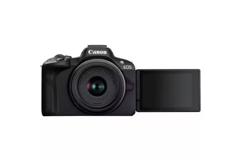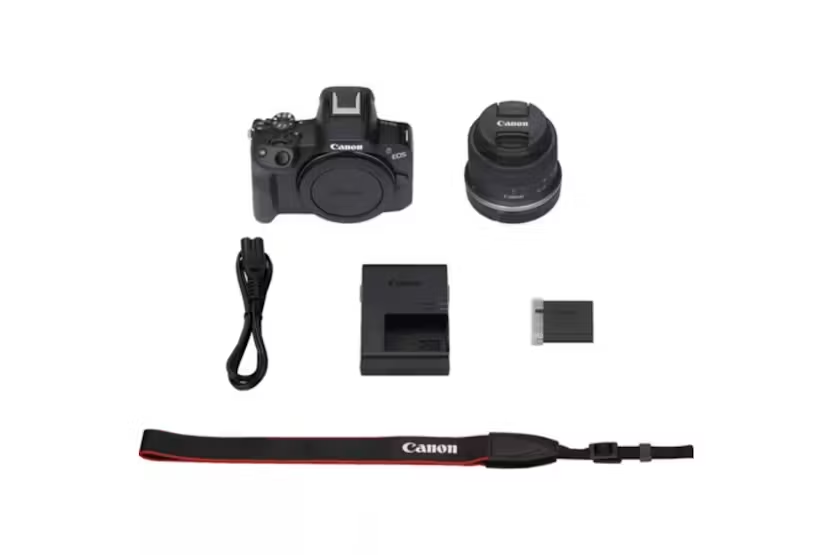 Capture your best moments with the Canon EOS R50 RF-S 18-45mm Lens Mirrorless Camera in black. Featuring a 24.2 megapixel APS-C sized sensor and Dual Pixel CMOS Auto Focus II, this camera delivers high-quality stills and 4K 30p movies with ease. The compact design, Vari-Angle touchscreen, and electronic viewfinder make it ideal for on-the-go creators who want to bring their vision to life in stunning detail. Experience fast and accurate focusing, seamless connectivity with smart devices, and the ability to shoot in UHD 4K with the Canon EOS R50. Whether you're a beginner or a seasoned pro, this camera is designed to help you capture your creative breakthroughs and share them effortlessly with the world.