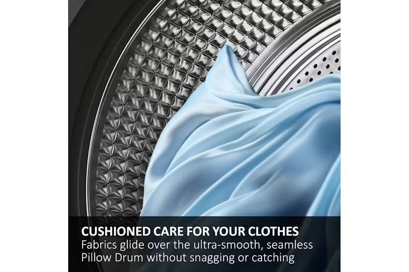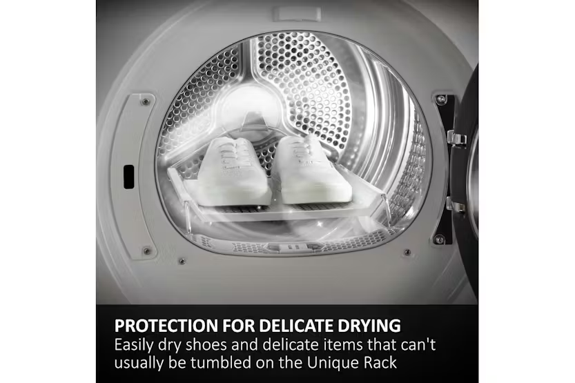 Experience the ultimate in efficient and innovative tumble drying with the Haier X Series 11 9kg Heat Pump Tumble Dryer. Featuring Ultra Reverse Drum technology to prevent tangling, Flexy Air for customizable airflow, and unique features like the Unique Rack and Pillow Drum for delicate items, this dryer offers a superior drying experience. Save time and energy with the Favorite function and easily navigate settings with the intuitive TFT screen. Upgrade your laundry routine with this high-performance appliance. Plus, with a remarkable A+++ -10% energy efficiency rating, the Haier X Series 11 not only provides exceptional drying results but also helps minimize environmental impact. Say goodbye to re-drying and tangled clothes, and hello to perfectly dry and cared-for garments every time.