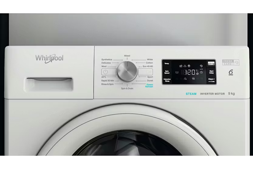 Upgrade your laundry experience with the Whirlpool 9kg Freestanding Washing Machine. Featuring innovative 6th Sense Technology, FreshCare+ system, and Steam Refresh function, this washing machine ensures optimal washing results while maintaining fabric quality. Enjoy peace and quiet with the silent performance of the Inverter Motor, and save time and energy with the Start Delay option. With a spacious 9kg capacity and energy-efficient A rating, this Whirlpool washing machine offers superior performance and convenience for your laundry needs. Elevate your laundry routine with the Whirlpool FFB9469WVUK Washing Machine. Experience the benefits of FreshCare+ treatment, Steam Refresh feature, and Rapid 30' wash cycle for quick and efficient results. With a whisper-quiet Inverter Motor and energy-efficient A rating, this washing machine combines performance and efficiency. The 6th Sense Technology adapts resources for optimal results, while the spacious 9kg capacity provides ample space for all your laundry needs. Upgrade to the Whirlpool FFB9469WVUK for a superior laundry experience.