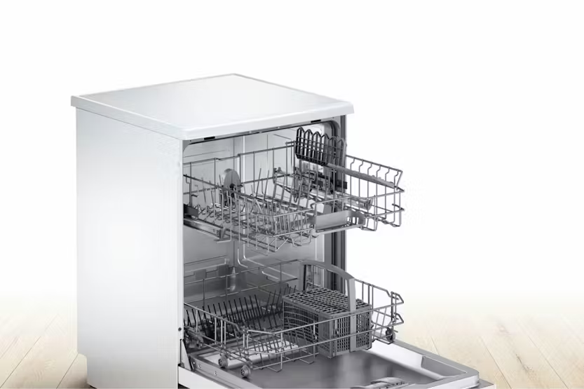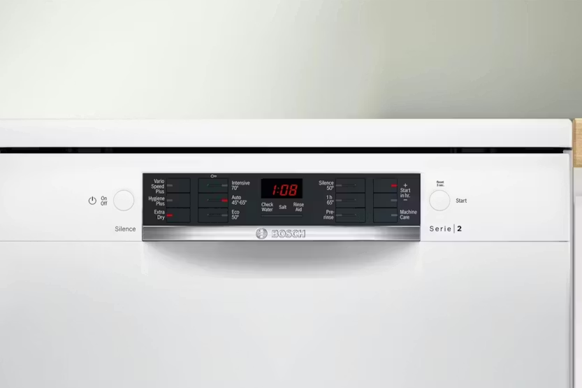 Upgrade your kitchen with the Bosch Series 2 Free Standing Dishwasher, offering a range of innovative features for a superior cleaning experience. The ExtraDry option ensures even plastic items come out completely dry, while the Silence Program reduces noise levels to a minimum. With automatic programmes adjusting water usage and temperature for optimal results, and the EcoSilence Drive delivering high-performance cleaning with low noise emission, this dishwasher combines efficiency and quiet operation. Plus, with Activewater Technology for environmentally friendly rinsing and DosageAssist for optimal cleaning results, this dishwasher is a smart choice for any home. Take advantage of the 10% back in Harvey Norman Gift Cards promotion when you spend 500 or more on Large Appliances, and enjoy the convenience and performance of the Bosch Series 2 Free Standing Dishwasher | 12 Place | SMS26AW08G.