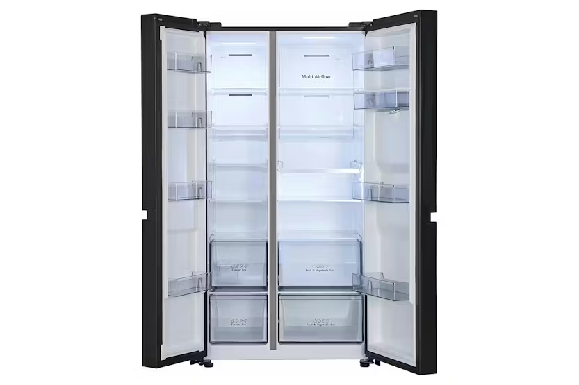 Upgrade your kitchen with the Hisense Freestanding Fridge Freezer RS840N4WFE. With concealed hinges for a sleek look and durable inverter technology for energy savings, this fridge offers ample storage space and smart features like digital temperature sensors and smart connectivity. Keep your food fresh and organized with the dual temp control zone, food management system, and multi-use beverage tray. The premium flat door design and touch electronic controls make this fridge a stylish and convenient addition to any home. Take advantage of the 10% back in Harvey Norman Gift Cards promotion when you spend 500 or more on Large Appliances. With features like self-closing doors, multi-air flow system, and XXL door balcony for extra storage, the Hisense RS840N4WFE offers a seamless blend of functionality and style. Enjoy brighter and more efficient LED lighting, easy access with recessed handles, and the convenience of controlling your fridge from anywhere with smart connectivity. Experience the perfect combination of innovation and design with this Hisense fridge freezer.