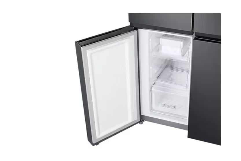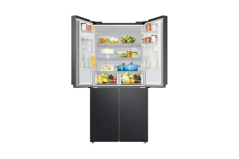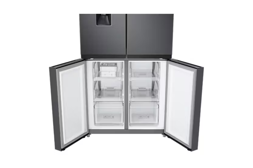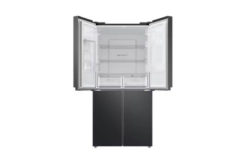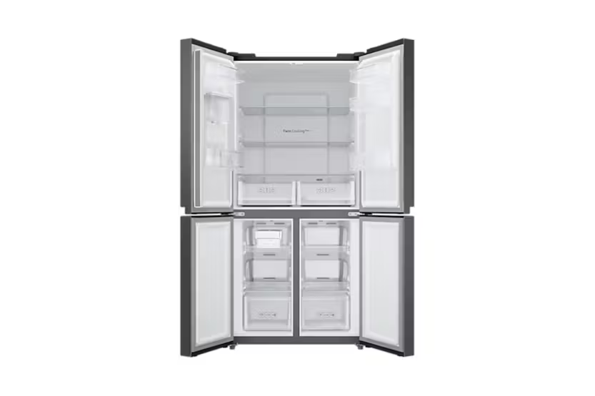 Upgrade your kitchen with the Samsung Series 8 French Style Fridge Freezer with Twin Cooling Plus™. Say goodbye to defrosting with the Total No Frost feature, ensuring an even temperature and no ice build-up. Keep your food fresh longer with Twin Cooling Plus technology, which prevents odours from mixing and maintains precise fridge temperatures. Enjoy the convenience of a non-plumbed water dispenser and rapid cooling options with Power Cool and Power Freeze. With a sleek design and optimal humidity control, this fridge freezer is a modern and efficient addition to any home.