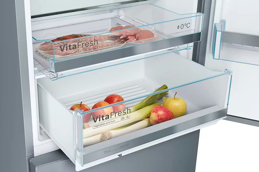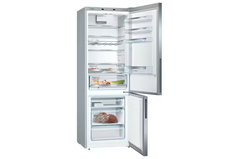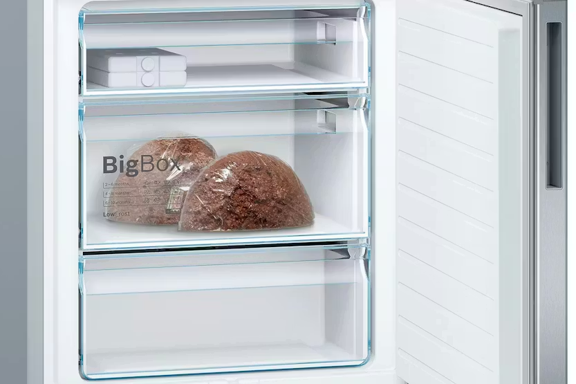 The Bosch Serie 6 Freestanding Fridge Freezer | KGE49AICAG offers ample space for storing XXL frozen goods with its BigBox Frozen Food Drawer, making it perfect for catering events or storing large items like cakes and pizzas. With features like LowFrost technology, separate cooling circuits, Super Cooling, FreshSense sensors, VitaFresh system, LED lighting, and an easy access shelf, this fridge freezer provides optimal storage conditions, energy efficiency, and convenience. Additionally, the Abnormal Alarm and Cold Accumulator ensure the safety and preservation of your food, even during power outages. Upgrade your kitchen with the Bosch Serie 6 Freestanding Fridge Freezer | KGE49AICAG and enjoy the benefits of advanced technology and user-friendly features. From the efficient LowFrost system to the convenient Super Cooling function, this fridge freezer is designed to keep your food fresh for longer while saving energy. The LED lighting and easy access shelf make it easy to organize and access your items, while the Abnormal Alarm and Cold Accumulator provide added peace of mind. With a sleek design and innovative features, this fridge freezer is a must-have for any modern kitchen.