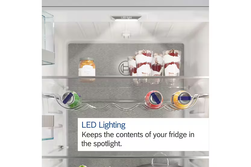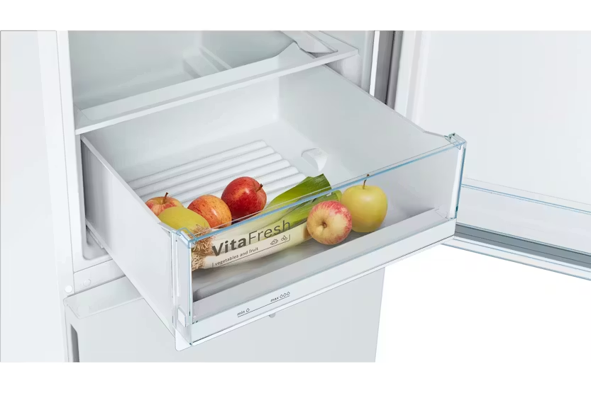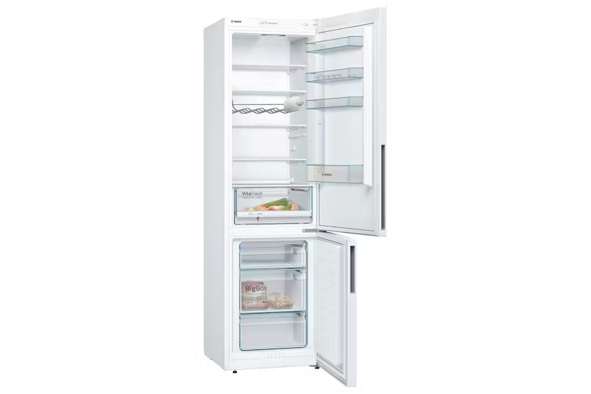 The Bosch Series 4 Freestanding Fridge Freezer | KGV39VWEAG offers a range of innovative features to keep your food fresh for longer and make accessing your items easier. With the VitaFresh drawer for climate-controlled storage, LED lighting for even illumination, and a BigBox frozen food drawer for XXL items, this fridge freezer provides ample space and convenience. The LowFrost and Superfreezing functions help reduce ice formation and protect pre-frozen food, while the FreshSense system ensures an ideal storage climate for optimal freshness and flavor. Experience the perfect combination of functionality and efficiency with the Bosch Series 4 Freestanding Fridge Freezer | KGV39VWEAG. With features like the VitaFresh drawer for longer-lasting fruits and vegetables, LED lighting for clear visibility, and the BigBox frozen food drawer for large items, this fridge freezer offers ample storage space and easy access to your food. The LowFrost and Superfreezing functions help save time and energy, while the FreshSense system ensures consistent temperature control for optimal food preservation.