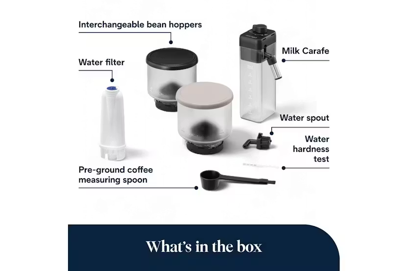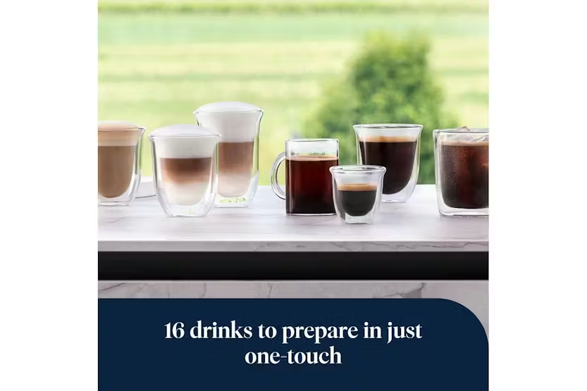Immerse yourself in the world of coffee with the De'Longhi Rivelia Fully Automatic Bean-to-Cup Coffee Machine. With the Bean Switch System, explore infinite bean varieties and enjoy a personalized coffee experience tailored to you with the 3.5" full-touch colour display. The Lattecrema Hot Technology ensures fine rich milk foam for your milk-based drinks, all in a compact and stylish sand beige design. With one-touch drinks and the ability to customize length and user profiles, this machine offers convenience and quality in every cup. Elevate your coffee routine with the EXAM440.55.BG Rivelia Coffee Machine. The De'Longhi Rivelia EXAM440.55.BG in sand beige offers a seamless coffee experience with features like the Bean Adapt Technology and 16 one-touch drinks. Enjoy freshly ground coffee, automatic milk foam, and the ability to switch between different bean varieties effortlessly. The intuitive display and compact design make this machine a perfect addition to any coffee lover's kitchen. Elevate your coffee experience with the De'Longhi Rivelia Fully Automatic Bean-to-Cup Coffee Machine.