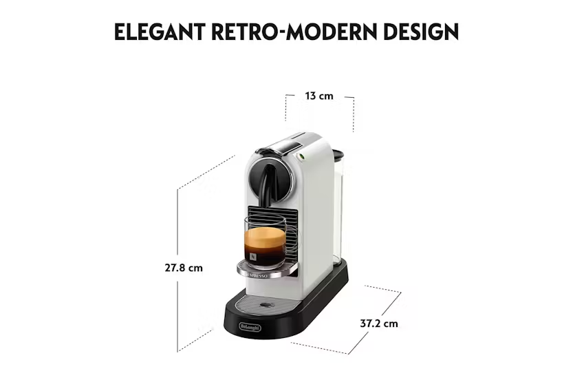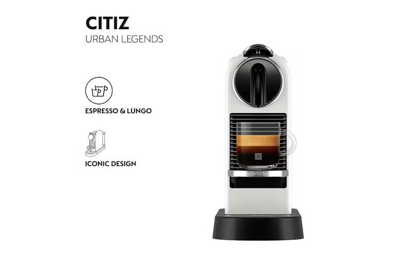 Elevate your coffee experience with the Nespresso Citiz Coffee Machine by De'Longhi in White. Indulge in iconic espressos and exceptional coffee flavors with the Nespresso Original system. With its sleek urban design, two coffee sizes, and fast heat-up system, enjoy the perfect cup of coffee at the touch of a button. Plus, with sustainability in mind, Nespresso is committed to social and environmental responsibility, making it the ideal choice for a more sustainable lifestyle. Upgrade your coffee routine with the Nespresso Citiz Coffee Machine today.
