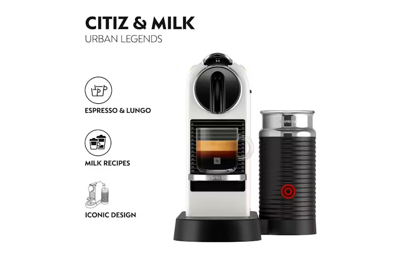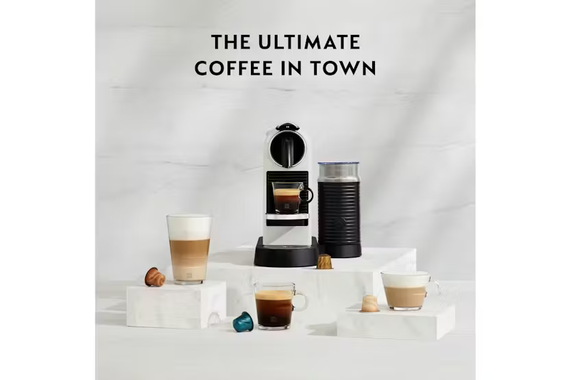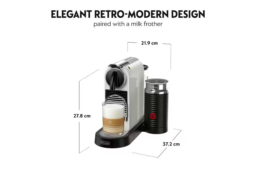 Elevate your coffee experience with the Nespresso Citiz Coffee Machine with Aeroccino Milk Frother by De'Longhi. Enjoy iconic espressos and a full range of coffee pods at the touch of a button, all while embracing sustainability with recyclable capsules. With a sleek design, fast heat-up system, and automatic shut-off feature, this machine offers convenience, quality, and style in every cup of coffee. Experience the perfect blend of taste and technology with the Nespresso Citiz.