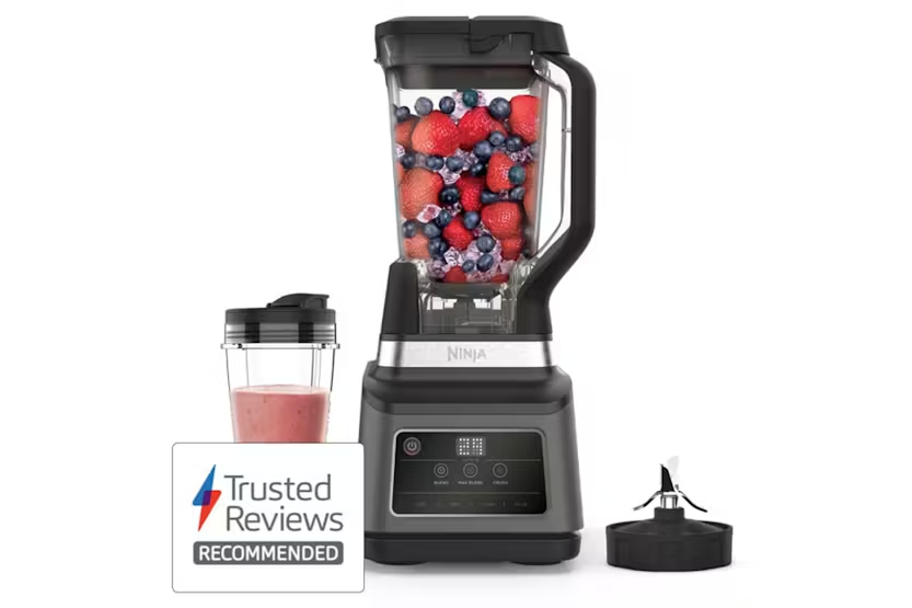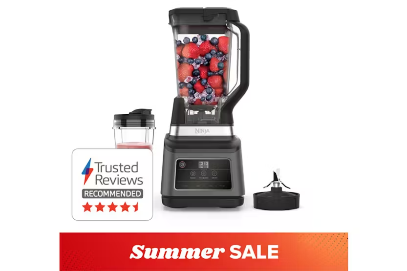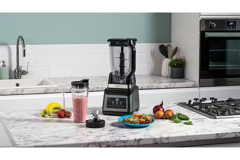 The Ninja 2-in-1 Blender with Auto-iQ in Black & Silver is a versatile kitchen essential that effortlessly blends everything from smoothies to sauces with its powerful 1200W motor and interchangeable stainless-steel blades. With Auto-iQ Technology, three automatic blending programs take the guesswork out of achieving perfect results, while the multi-serve jug and single-serve cup allow you to easily share or enjoy your creations on-the-go. Easy to use and clean, this blender comes with a recipe guide to inspire your culinary creativity. Experience the convenience and power of the Ninja BN750UK Blender with Auto-iQ in Black & Silver. This durable blender features precision-engineered blades and a 1200W motor for effortless blending of fruits, vegetables, nuts, seeds, and even ice. The Auto-iQ Technology offers three blending programs for easy use, while the multi-serve jug and single-serve cup provide versatility for different serving sizes. With dishwasher-safe parts and an included recipe guide, this blender is perfect for creating a variety of delicious drinks and dishes.