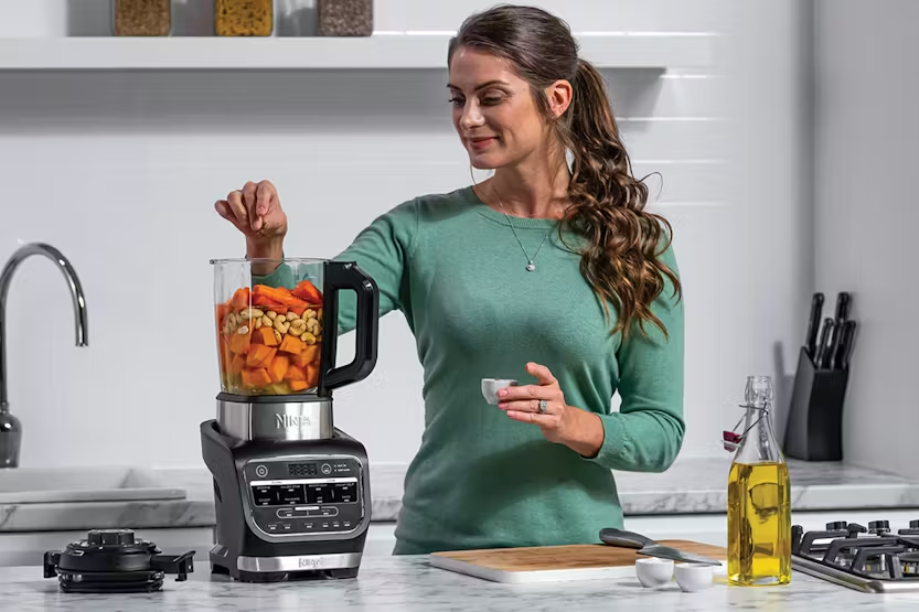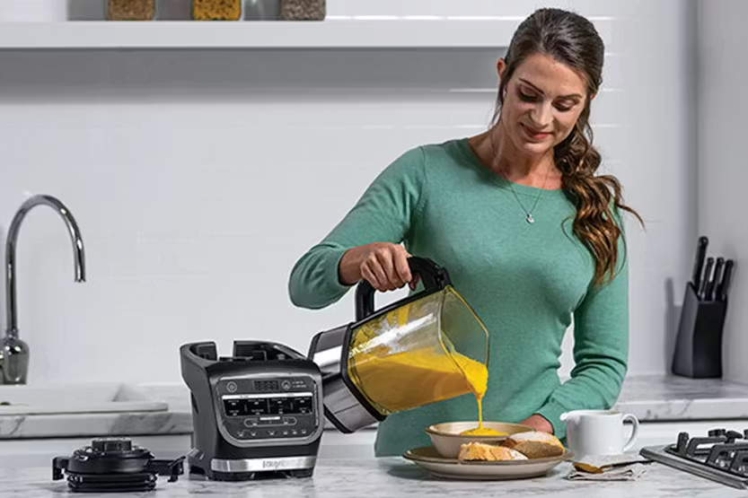 The Ninja Blender and Soup Maker HB150UK is a versatile 2-in-1 appliance that allows you to easily create a wide range of hot and cold dishes, from soups and sauces to desserts and smoothies. With a powerful 1000W motor and Auto iQ Technology, this blender makes cooking and blending a breeze, with precise temperature controls and 10 pre-set programmes for perfect results every time. The premium glass jug, non-stick coating, and dedicated cleaning programme make it easy to use and clean, making it a must-have for any kitchen. Experience the convenience of cooking and blending with the Ninja Blender and Soup Maker HB150UK. This innovative appliance features a built-in heating element that can cook soup in just 20 minutes, allowing you to enjoy a variety of delicious creations from creamy soups to frozen cocktails. The High Speed Crushing Blade effortlessly blends hot and cold ingredients, while the Auto iQ programmes take the guesswork out of blending. With its easy-to-use design and premium features, this Ninja blender is perfect for creating homemade meals and drinks with minimal effort.
