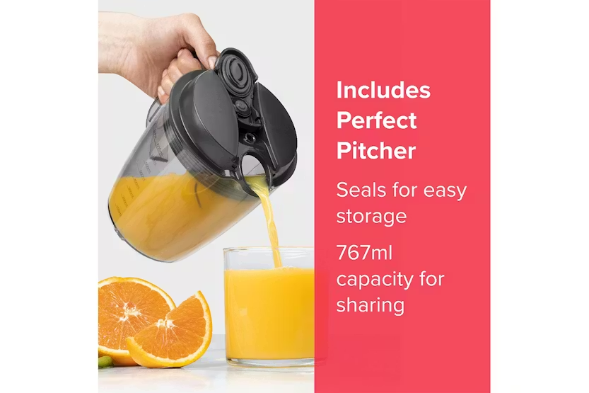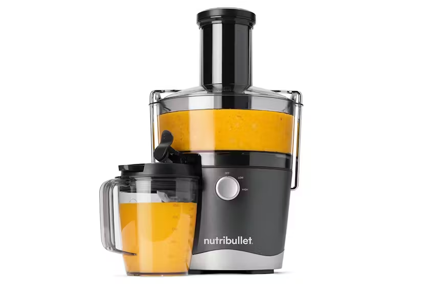 The Nutribullet 800W Juicer is a compact and efficient juicer designed for everyday use. With a wide 3” feed chute that eliminates the need for prep work, two speeds for precise juicing control, and a sealing juice pitcher for easy storage, this juicer makes it simple to enjoy fresh, homemade juice with minimal effort. Cleanup is a breeze with dishwasher-safe parts, making this juicer a convenient addition to any kitchen. Say goodbye to complicated juicing and hello to quick, delicious results with the Nutribullet 800W Juicer.
