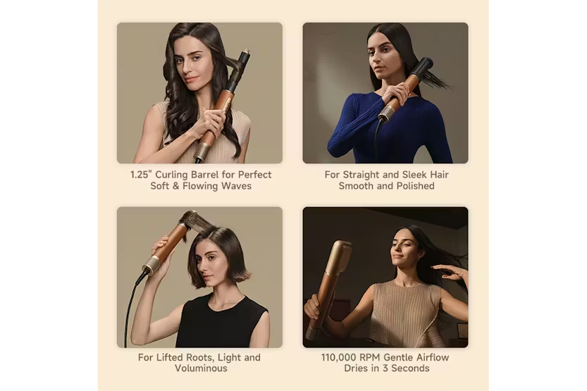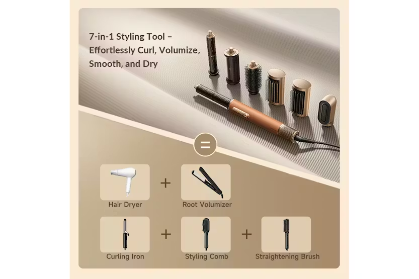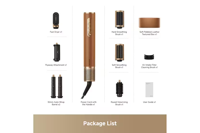 Get salon-quality hair styling at home with the Dreame AirStyle Pro 7-in-1 Hair Styler. This versatile tool kit harnesses high-speed jet airflow to dry and style your hair with professional precision, offering a range of attachments for customized looks. With features like a 300 t/s NTC sensor to prevent heat damage, one-press cold shot for lasting styles, and a lightweight design, the AirStyle Pro makes styling effortless and efficient. Experience rapid curls and smooth, sleek looks with the AirStyle Pro's 7-in-1 functionality. From long-lasting symmetrical curls to taming frizz in seconds, this hair styler offers high-speed airflow and precise control to maintain your hair's smoothness and shine. With a leather textured design for added elegance and convenience, the AirStyle Pro is the perfect tool for achieving a variety of stylish looks with ease.