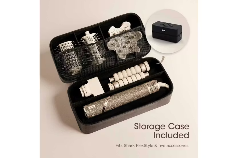 Transform your hair styling routine with the Shark FlexStyle 5-in-1 Air Styler & Hair Dryer Gift Set in Champagne Sparkle. This versatile set includes 5 styling attachments for effortless curls, sleek straight styles, bouncy blow dries, and more. With Coanda Technology and 3 heat and airflow settings, you can achieve salon-worthy results without heat damage. Lightweight and compact, this limited edition set is perfect for travel and everyday glamour. Elevate your hair styling game with the Shark FlexStyle 5-in-1 Air Styler & Hair Dryer Gift Set in Champagne Sparkle. This limited edition set features over 20,000 shimmering crystals for a touch of red carpet glamour in your everyday routine. With 5 styling attachments, including Auto-Wrap Curlers and a Paddle Brush, you can effortlessly curl, straighten, volumize, smooth, and define your hair. Say goodbye to heat damage and hello to fast drying power with this must-have gift set for all hair types.
