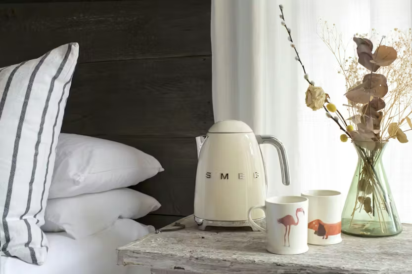 Upgrade your morning routine with the Smeg 1.7L 50's Style Kettle in Cream. With a soft opening lid for easy filling, a limescale filter for a cleaner taste, and 3000W power for quick boiling, this kettle combines style and functionality effortlessly. The 360 swivel base and automatic switch off at 100˚C add convenience and peace of mind to your daily tea or coffee routine. Complete the look with a matching toaster for the perfect breakfast set. Add a touch of retro charm to your kitchen with the Smeg 1.7L 50's Style Kettle in Cream. Featuring a glossy finish, polished chrome base, and stainless steel accents, this kettle not only looks stylish but also offers practical features like a water level indicator, safety auto shut off, and integrated cord storage. Elevate your morning routine with this elegant and efficient kettle.