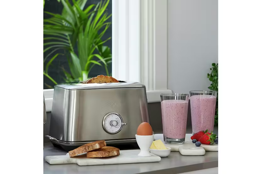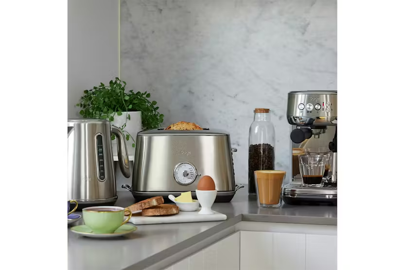 Upgrade your breakfast routine with the Sage Toast Select Luxe Toaster in brushed stainless steel. This compact 2-slice toaster features 6 preset toast types, variable browning control, and innovative auto features like 'A Bit More' and 'A Quick Look' functions for flawless toasting. With wider slots for larger breads and easy cleaning with a front crumb tray, this toaster is a stylish and practical addition to any kitchen. Experience the perfect toast every time with the Sage Toast Select Luxe Toaster. Crafted with premium brushed stainless steel and chrome accents, this toaster not only looks sleek but also offers convenient features like progress indicator LED countdown, 6 preset toast types, and variable browning control. Say goodbye to uneven toasting and hello to a delicious breakfast with this innovative and easy-to-clean toaster.