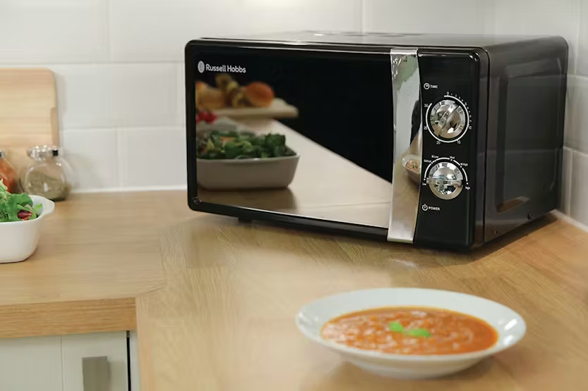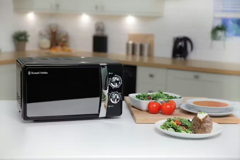 The Russell Hobbs 17L 700W Freestanding Solo Microwave in Jet Black is a compact and stylish addition to any kitchen, perfect for cooking a variety of meals in minutes. With easy-to-use dials for selecting power levels and cooking times, as well as auto defrost and auto cook menus, this microwave offers convenience and flexibility. The interior light and easy cleaning make this appliance a practical and efficient choice for busy households. Upgrade your cooking experience with the Russell Hobbs RHMM701B microwave, featuring 5 power levels and a 30-minute timer for precise cooking. The sleek design and compact size make it ideal for kitchens with limited space or even for use in caravans. With a range of convenient features like auto defrost and pre-programmed auto cook menus, this microwave offers versatility and ease of use for all your cooking needs.