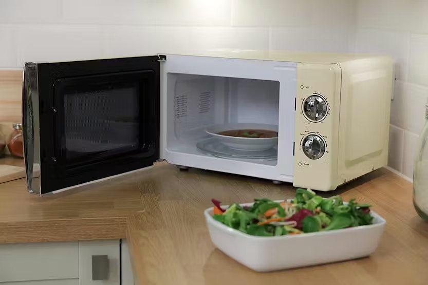 The Russell Hobbs 17L 700W Freestanding Solo Microwave in Cream is a compact and stylish addition to any kitchen, offering convenient cooking options with its 5 power levels and auto cook menus. The easy-to-use dials and interior light make cooking a breeze, while the auto-defrost function saves time when preparing meals. With a sleek design and easy cleaning maintenance, this microwave is a practical and versatile choice for any home chef. Experience the convenience of cooking and reheating meals with precision using the Russell Hobbs RHMM701C. With its sleek cream design and advanced features such as auto cook menus and defrost settings, this microwave offers flexibility and ease of use. The interior light and dials control make cooking a breeze, while the easy cleaning maintenance ensures lasting performance. Upgrade your kitchen with this stylish and functional appliance today.