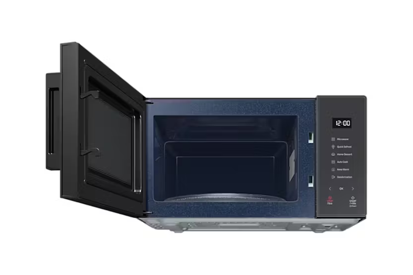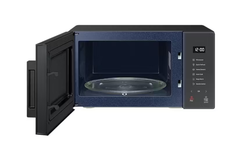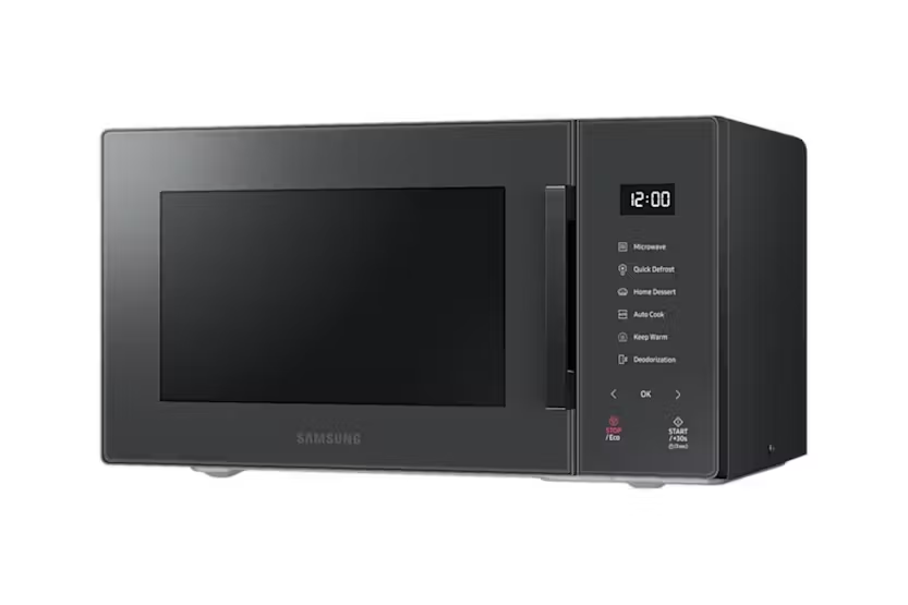 Upgrade your kitchen with the Samsung 23L Solo Microwave featuring Quick Defrost for fast thawing, a stylish Glass Touch control panel, and a range of color options to match your decor. The Ceramic Enamel interior is easy to clean and won't discolor over time, while the Triple Distribution System ensures even cooking. With Auto Cook presets and Eco Mode for energy savings, this microwave offers convenience and efficiency in one sleek package. Experience effortless cooking with the Samsung MS23T5018AC Microwave. Its Quick Defrost feature, Glass Touch control panel, and variety of color options make it a stylish and functional addition to any kitchen. The Ceramic Enamel interior is durable and easy to clean, while the Triple Distribution System ensures perfectly cooked meals every time. With Auto Cook presets and Eco Mode for energy efficiency, this microwave is a versatile and eco-friendly choice for your home.