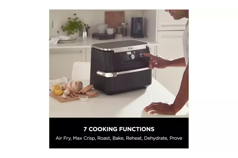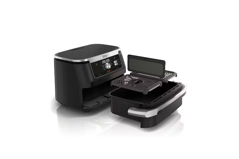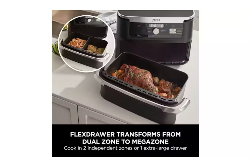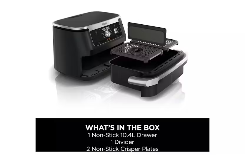 The Ninja 10.4L Foodi Dual Zone Air Fryer in sleek black allows you to cook up to 45% faster than an oven, making it perfect for feeding a crowd. With Dual Zone Technology, you can cook in 2 independent zones, allowing you to mix and match cooking programs, times, and temperatures to create delicious meals for 8+ people. The air fryer also offers 7 cooking functions, including Air Fry, Roast, Bake, and Dehydrate, giving you versatile options to create a variety of dishes. Plus, the non-stick, dishwasher-safe design makes cleaning up a breeze. Enjoy healthier, faster, and more efficient cooking with the Ninja 10.4L Foodi Dual Zone Air Fryer. The Ninja 10.4L Foodi Dual Zone Air Fryer in black offers an extra-large 10.4L MegaZone, perfect for fitting larger foods like a 2kg leg of lamb or traybake meals. With the ability to cook 2 different foods at the same time using Dual Zone Technology, you can easily cater to different dietary requirements or tastes. The air fryer cooks up to 65% faster than fan ovens, making it quick and easy to create family-size meals. Additionally, the air fry