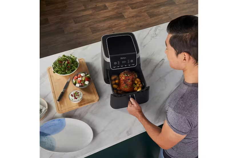 The Ninja 6.2L Max Pro Air Fryer in sleek black offers a compact design with a larger capacity, perfect for cooking for one or up to four people. With 6 cooking functions, including air fry, roast, bake, and dehydrate, this air fryer allows for healthier frying with up to 75% less fat than traditional methods. Save time and energy with up to 50% faster cooking than fan ovens, and enjoy the convenience of the adjustable Crisper Plate for versatile cooking options. Elevate your cooking experience with the Ninja Air Fryer MAX PRO. Upgrade your kitchen with the Ninja 6.2L Max Pro Air Fryer in black, offering a spacious 6.2L drawer that can fit up to 4 chicken breasts. Enjoy healthier cooking with up to 75% less fat than traditional methods, and save time with up to 50% faster cooking than fan ovens. The adjustable Crisper Plate allows for versatile cooking options, making it easy to cook a variety of dishes with just one appliance. Elevate your cooking game and create delicious meals for yourself or your family with the Ninja Air Fryer MAX PRO.