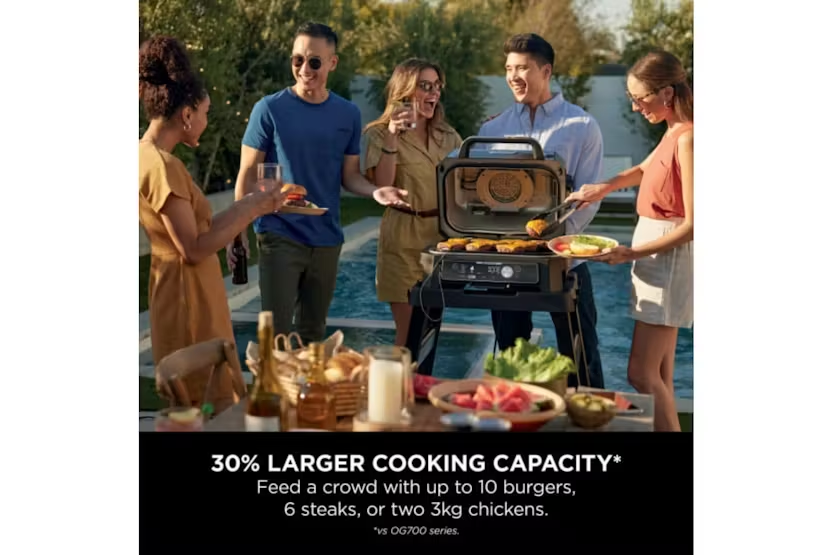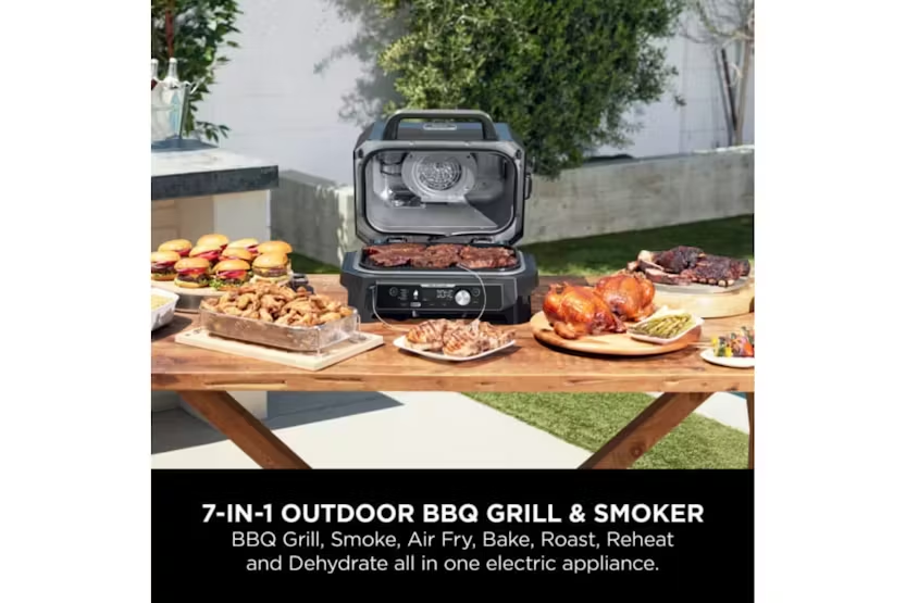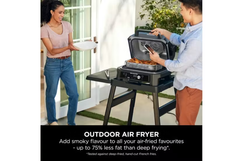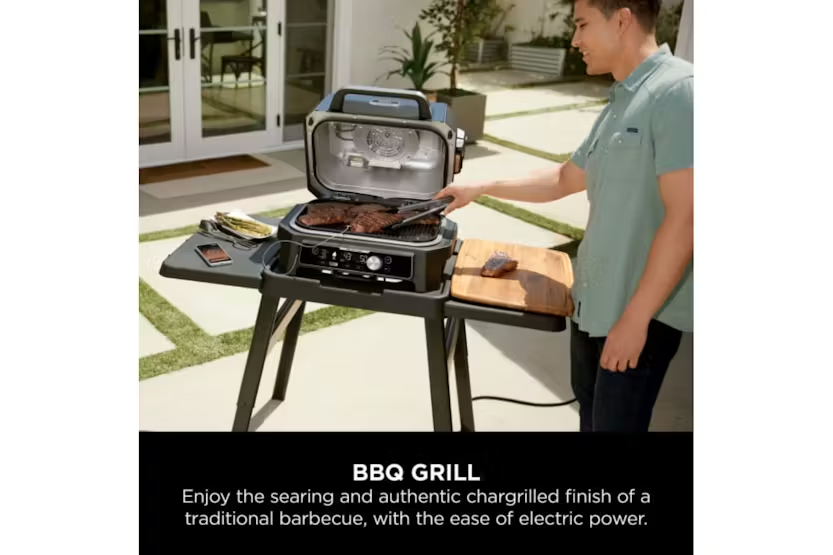 The Ninja Woodfire Pro Connect XL Electric BBQ Grill & Smoker in Blue/Black allows you to control your BBQ from your phone with the Pro Connect app, giving you the freedom to relax and enjoy time with loved ones. With built-in probe and 7 functions including BBQ grill, smoker, air fry, bake, roast, dehydrate, and reheat, this grill offers authentic smoky flavors with natural wood pellets, all powered by electricity for easy and safe outdoor use. Plus, with a large grill capacity fitting up to 10 burgers or 2 whole chickens, you can host big BBQ gatherings with ease. Experience the convenience and versatility of the Ninja Woodfire Pro Connect XL Electric BBQ Grill & Smoker. Control your cooking progress from your phone with the Pro Connect app, while enjoying the authentic smoky flavors of woodfire technology. With a large grill capacity and 7 cooking functions, this electric BBQ grill is perfect for hosting gatherings and creating delicious meals outdoors. Built with premium materials for year-round outdoor use, this BBQ grill offers a hassle-free and safe alternative to traditional charcoal and gas grills.