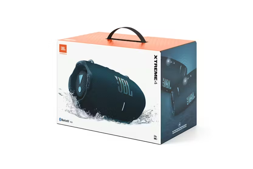 Experience next-level massive JBL Pro Sound with the JBL Xtreme 4 Bluetooth Speaker in Blue. With two woofers, two powerful drivers, and dual pumping JBL Bass Radiators, you'll enjoy dynamic, immersive sound with deeper bass and plenty of detail. Take the music with you all day long, thanks to up to 24 hours of playtime plus an additional 6 hours with Playtime Boost. The speaker is also waterproof and dustproof, making it perfect for any environment, from poolside parties to seaside picnics. Pair multiple speakers for an even bigger sound experience and use the built-in powerbank to charge your devices on the go. The JBL Xtreme 4 is not just a speaker, it's a lifestyle. With features like Al SoundBoost for powerful sound, a convenient shoulder strap for easy carrying, and the ability to replace the battery for extended use, this speaker is designed to enhance your music experience wherever you go. Plus, the speaker is made with recycled materials, so you can enjoy your music while being environmentally conscious. Live loud with the JBL Xtreme 4 and immerse yourself in the music like never before.