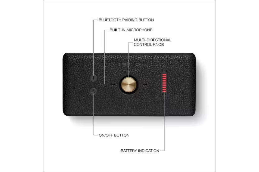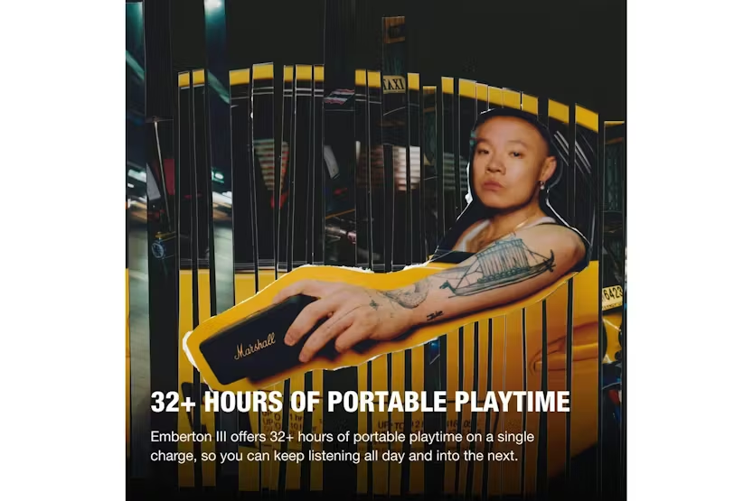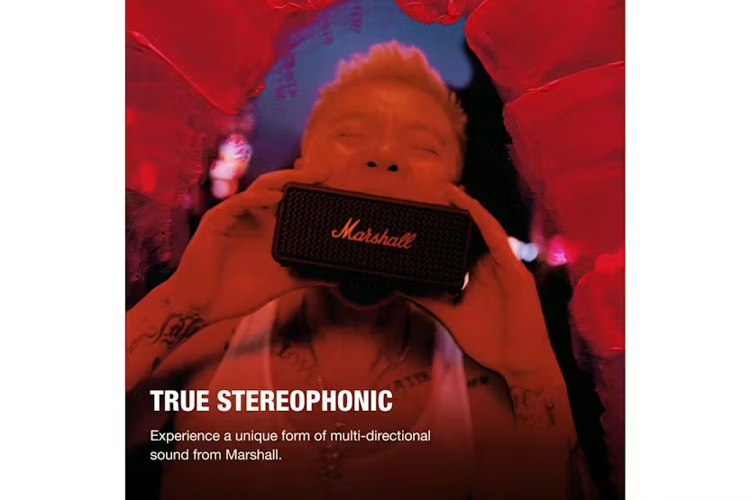 Experience the ultimate in portable Bluetooth speakers with the MARSHALL Emberton III Black Brass (D2C). This rugged speaker delivers iconic Marshall sound quality and 360° True Stereophonic technology in a compact design, perfect for outdoor adventures. With a 32+ hour battery life, IP67 dust and waterproof rating, and sustainable materials, this speaker is the perfect blend of high-end sound and lifestyle convenience. Elevate your audio experience with the MARSHALL Emberton III Black Brass (D2C) and enjoy unrivalled sound quality wherever you go.