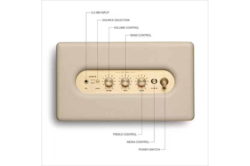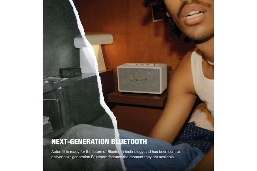 Experience music like never before with the MARSHALL 1006007 - ACTON BT III Cream Bluetooth speaker. Its re-engineered stereo soundstage and next-gen Bluetooth technology deliver a wide-reaching, immersive sound experience perfect for any music enthusiast. With easy setup, sustainable construction, and innovative design features, this iconic speaker is sure to impress both your ears and your environmental consciousness. Elevate your music listening experience with the MARSHALL 1006007 - ACTON BT III Cream Bluetooth speaker today.