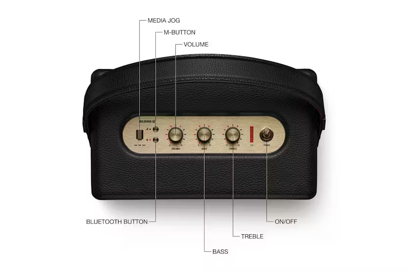 Experience the powerful sound of the MARSHALL 1007443 - Kilburn III Bluetooth Speaker, designed by the renowned brand Marshall. With over 20 hours of portable playtime, multi-host functionality, and a design that withstands splashes of water, this compact and stylish speaker is perfect for music lovers on the go. Enjoy immersive audio with sublime clarity and make the Kilburn III your ultimate musical partner. Elevate your audio experience with the MARSHALL 1007443 - Kilburn III Bluetooth Speaker. Packed with cutting-edge technology and a sleek retro design, this speaker delivers commanding sound quality and a powerful audio experience every time. Whether you're jamming out to your favorite tunes or creating the perfect ambiance, the Kilburn III is a must-have for those seeking quality, performance, and aesthetics in their audio equipment.