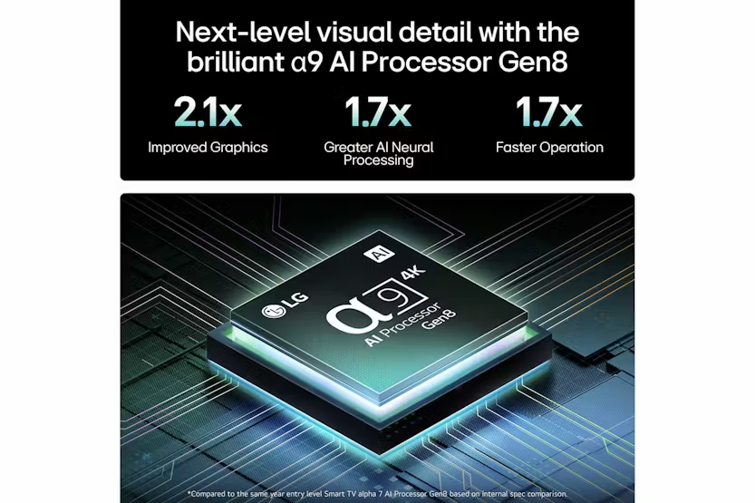 Experience the ultimate in visual detail with the LG 42" C5 OLED Evo 4K Smart TV. Powered by the alpha 9 AI Processor Gen8, this TV delivers next-level image quality by analyzing and upscaling every frame with enhanced facial expressions and depth. Enjoy brighter visuals, perfect black levels, and vibrant colors with features like Brightness Booster, Perfect Black, and Perfect Colour, certified for 100% Color Volume and Fidelity. The AI Picture Pro, AI Magic Remote, and AI Voice ID provide a seamless and personalized viewing experience, while the AI Concierge, Picture Wizard, and Sound Wizard offer advanced customization options for sound and picture preferences. With upgrades for 5 years through the webOS Re:New Program, enjoy the latest features and software updates while keeping your privacy and data secure. Transform your TV into the ultimate entertainment hub with features like Multi View for multiple screens, LG Channels for free streaming content, and the Gaming Portal for access to thousands of games. Enjoy peak gaming performance with G-Sync compatibility, Dolby Vision, Dolby Atmos, and Ambient FILMMAKER MODE for a cinematic experience. The ultra-slim design and USB camera compatibility add convenience and versatility to your viewing experience. With hands-free voice control, intelligent voice recognition, and the Home Hub