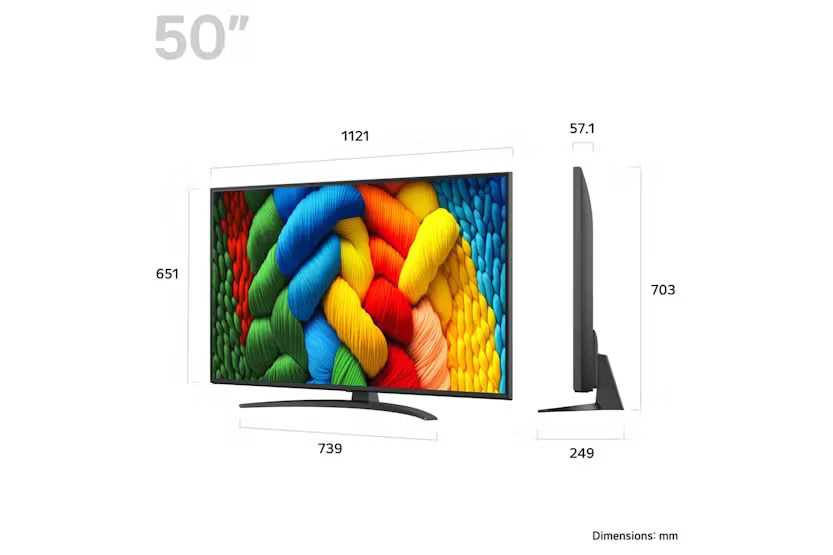 Experience the ultimate in picture quality with the LG NANO81 50" 4K Ultra HD HDR LED Smart TV. Featuring the powerful Alpha 7 AI Processor Gen8, enjoy vivid colours, crisp details, and immersive surround sound for a truly cinematic experience. With AI Voice ID, AI Search, and AI Chatbot, control your TV effortlessly and access personalized recommendations with ease. Upgrade your entertainment experience with the LG NANO81 50" 4K Ultra HD HDR LED Smart TV. Enjoy pure colours in real 4K, enhanced resolution with 4K Super Upscaling, and personalized sound profiles with AI Sound Wizard. With the AI Magic Remote and AI Concierge, easily navigate through your favorite content and enjoy a seamless viewing experience.