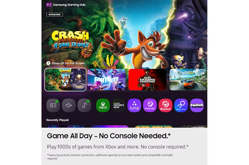 Experience vibrant colours, enhanced detail, and immersive entertainment with the Samsung U7000F 55" Crystal 4K UHD HDR Smart TV. Powered by the advanced Crystal Processor 4K, this sleek TV upscales content to stunning 4K quality, while features like Smart TV Powered by Tizen OS and Object Tracking Sound Lite enhance your viewing experience. With the addition of the recommended Samsung B650F Soundbar, elevate your home entertainment to new heights. Immerse yourself in a world of rich colours, dynamic audio, and seamless streaming with the Samsung U7000F Smart TV. From gaming hub capabilities to advanced visuals like PurColour and HDR10+, this TV offers a complete entertainment package. With features like Motion Xcelerator, Auto Game Mode, and Samsung SmartThings, the Samsung U7000F delivers smart viewing, immersive gaming, and stunning aesthetics all in one.