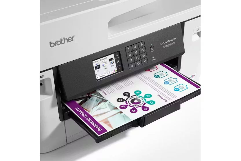 The Brother MFC-J5340DW All-in-One Wireless Printer is a professional A3/A4 printer designed to meet the needs of demanding small offices and business workgroups. With fast automatic 2-sided printing, a 6.8 cm colour touchscreen, and a 250 sheet paper capacity, this versatile printer offers print, copy, scan, and fax functionality. Enjoy high quality prints, fast print speeds, and low running costs, all while staying connected with wired and wireless options, as well as mobile compatibility through the Brother Mobile Connect app. Experience ultra-fast, durable, precision printing with the Brother MFC-J5340DW. This all-in-one printer allows you to produce a variety of A3 and A4 colour documents effortlessly, while the 50 sheet Automatic Document Feeder and easy-to-navigate LCD touchscreen streamline your workflow. With features like remote printing, advanced colour technology, and long-life components, the MFC-J5340DW is the perfect solution for professional printing needs.