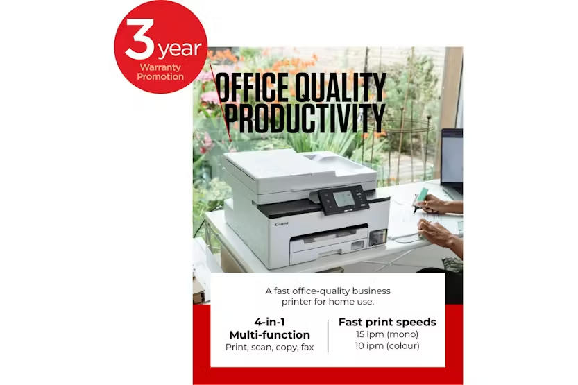 The CanonMAXIFY GX2050 4-in-1 MegaTank Printer is the ultimate solution for your home or hybrid office. With fast printing speeds, automatic document feeder, compact design, and affordable refills, this printer enhances productivity and efficiency for all your printing, scanning, copying, and faxing needs. Embrace seamless, disruption-free printing with the CanonMAXIFY GX2050. Discover unparalleled functionality and durability with the CanonMAXIFY GX2050 4-in-1 MegaTank Printer. This compact and user-friendly printer delivers top-notch printing quality, fast speeds, and high-volume capabilities, making it the ideal choice for your home office. Say goodbye to constant paper reloads and enjoy hassle-free document handling with this reliable office hub.