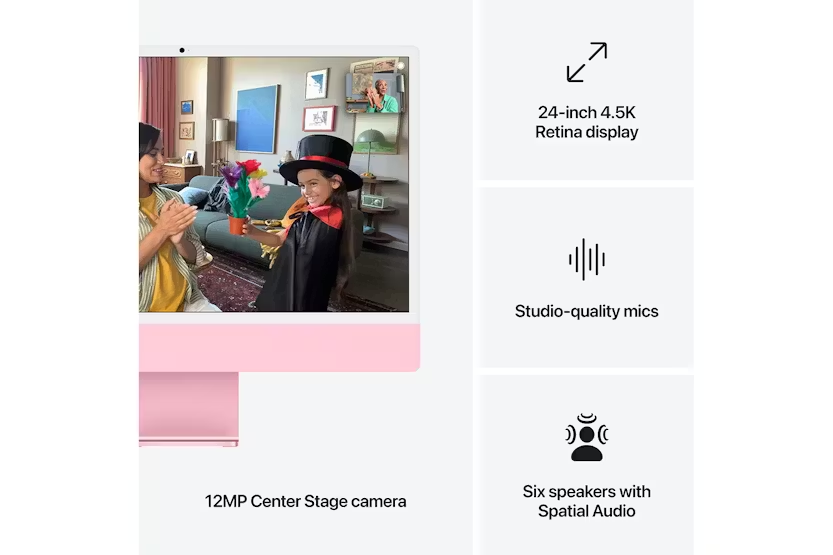 Get more done faster with the iMac 24" 4.5K M4 in Pink. Featuring the powerful Apple M4 chip, immersive 4.5K Retina display, advanced camera and audio capabilities, and seamless connectivity options, this ex-display model offers style and performance in one sleek package. With Apple Intelligence and built-in privacy and security features, this iMac is perfect for those who value both aesthetics and functionality. Please note that this product comes with a full guarantee and a 2-year warranty courtesy of Harvey Norman. While there may be signs of slight wear on the box and light usage marks on the product, rest assured that you are getting a high-quality, supercharged iMac that fits perfectly in your space and integrates seamlessly with your other Apple devices.