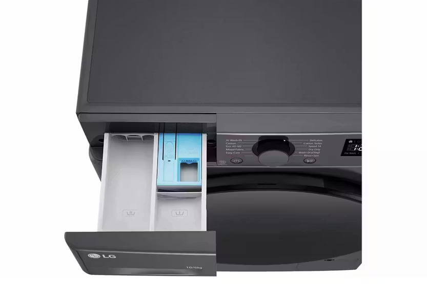 The LG Freestanding 10kg Washer/6kg Dryer | FWY606GBLN1 offers high energy efficiency with A-10% energy efficiency, helping you save costs and energy while providing an excellent wash. Its bigger capacity allows you to wash 2kg more clothes at once in the same size washer, thanks to the increased drum capacity. With features like Deep-Learning AI DD for optimal wash patterns, TurboWash for quick and thorough cleaning in just 39 minutes, and steam to reduce allergens, this washer/dryer combo ensures your clothes are clean, fresh, and cared for. In addition, the LG FWY606GBLN1 comes equipped with hygienic and durable lifters, a tempered glass door, and a more visible display for added convenience. With features like delay timer, vibration sensor, LoadSense, and Smart Diagnosis, this appliance offers a seamless laundry experience that is both efficient and effective.
