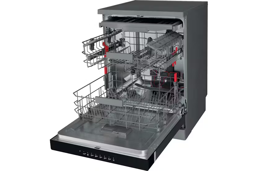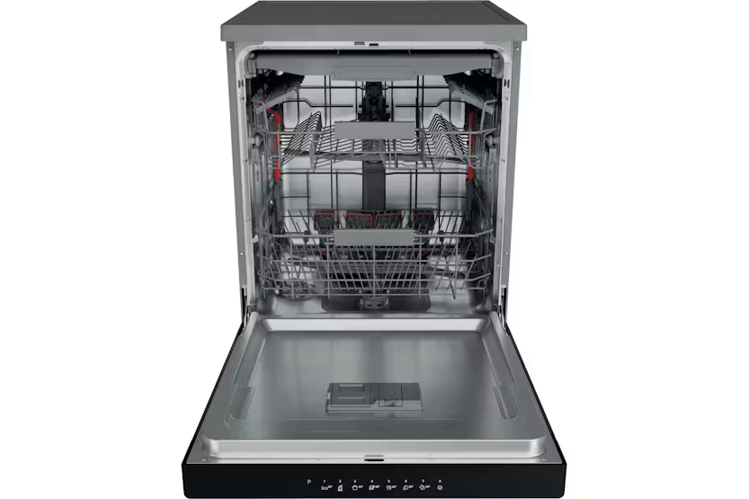Upgrade your kitchen with the Whirlpool Freestanding Dishwasher WFC3C33PFXUK. This inox-colored dishwasher features innovative 6th Sense technology for perfect washing results without the need for pre-washing. With a spacious 14 place setting capacity, adjustable feet for stability, and eco-friendly features like Extra Space design and Natural Dry, this dishwasher offers outstanding energy efficiency and exceptional cleaning performance. Experience the convenience of flexible washing options, powerful PowerClean Pro technology, and intelligent sensors that adjust resources for optimal cleaning results. With a sleek design, silent performance, and advanced features like Start Delay and single rack washing option, the Whirlpool Dishwasher WFC3C33PFXUK is the perfect choice for a modern, efficient kitchen appliance.